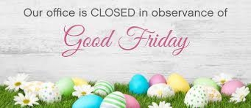 Our Offices will be closed on Friday, April 3, 2026 in observance of Good Friday. We will re-open on Monday, April 6th at 8:30 A.M.